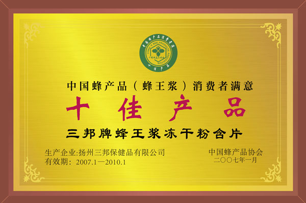 • 中國蜂產品消費者滿意十佳產品